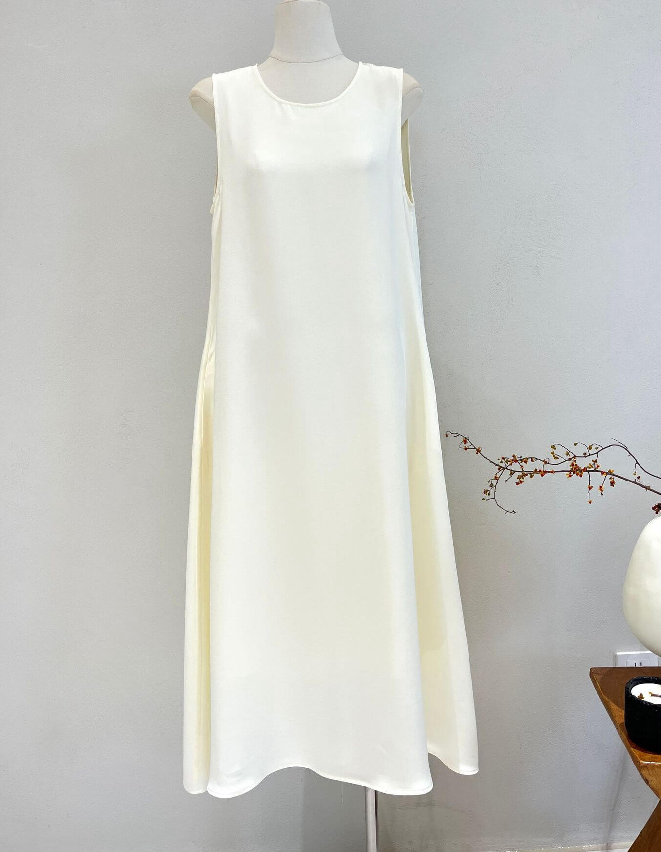 Un vestido sin mangas de seda morera 30 momme que combina elegancia atemporal y comodidad suprema. Perfecto para cualquier ocasión.