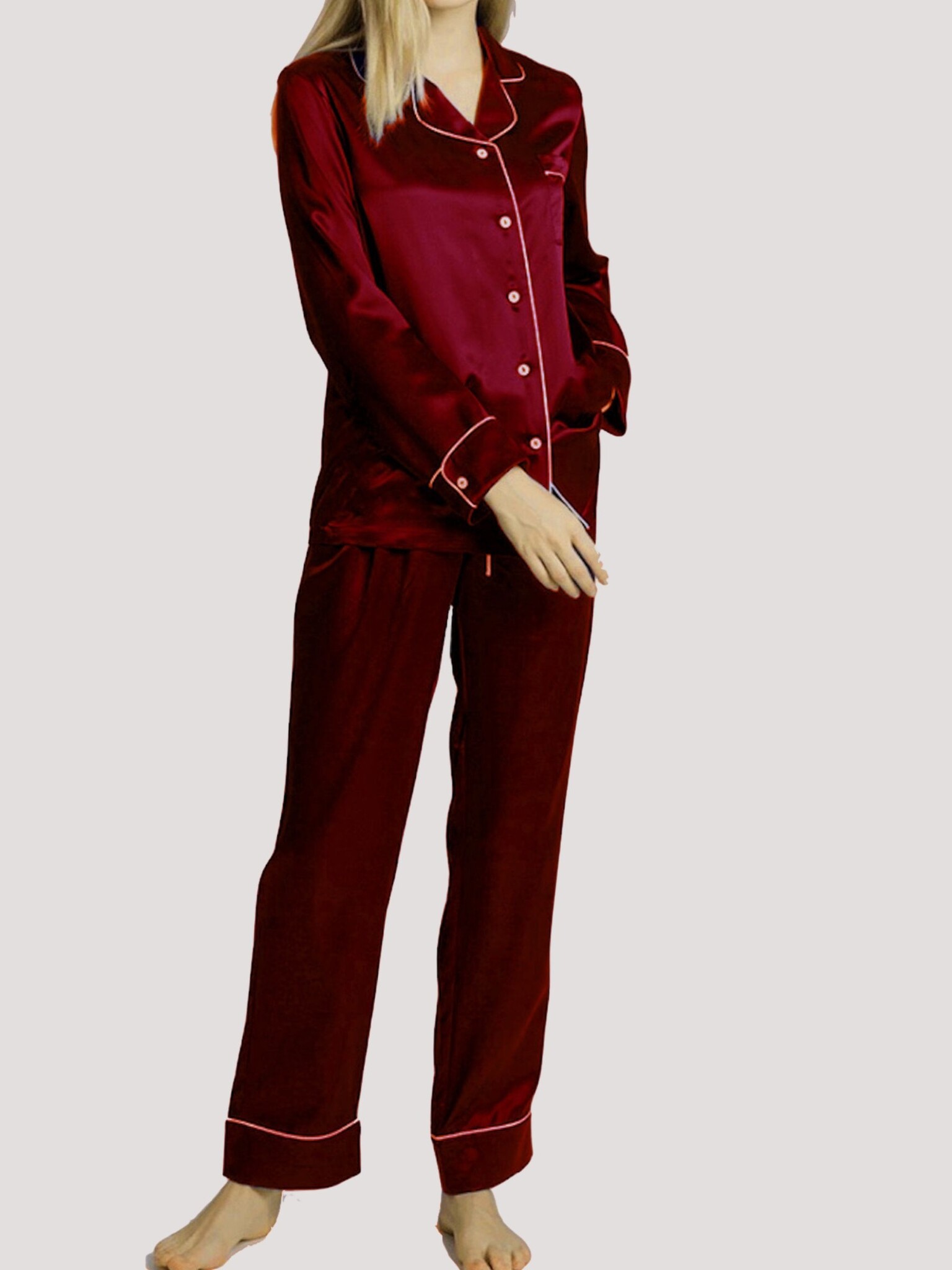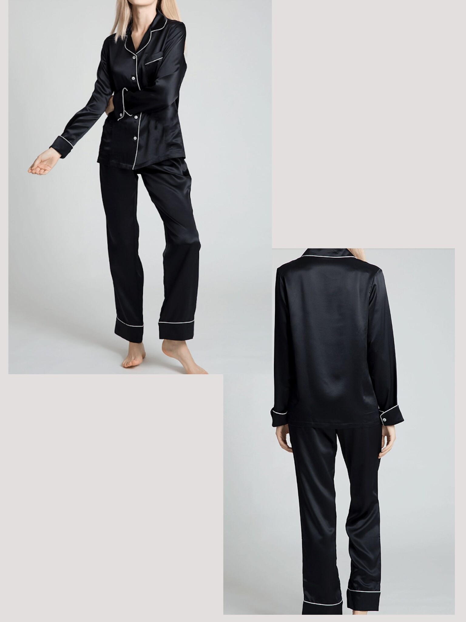 • Deze zijden pyjama set is afgewerkt met de bies. Alle naden zijn zorgvuldig gestikt en gezoomd.