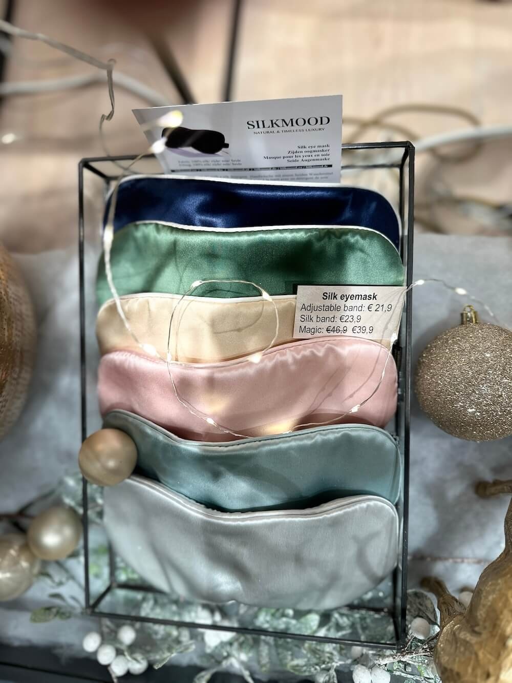 Onze oogmaskers zijn van 100% zijde aan beide kanten, dus men kan ze langst 2 kanten dragen. De binnenkant is van zwarte zijde en zorgt voor een optimale licht verduistering. De perfecte pasvorm met elastische band omwikkeld met zijde biedt uitstekend draagcomfort.